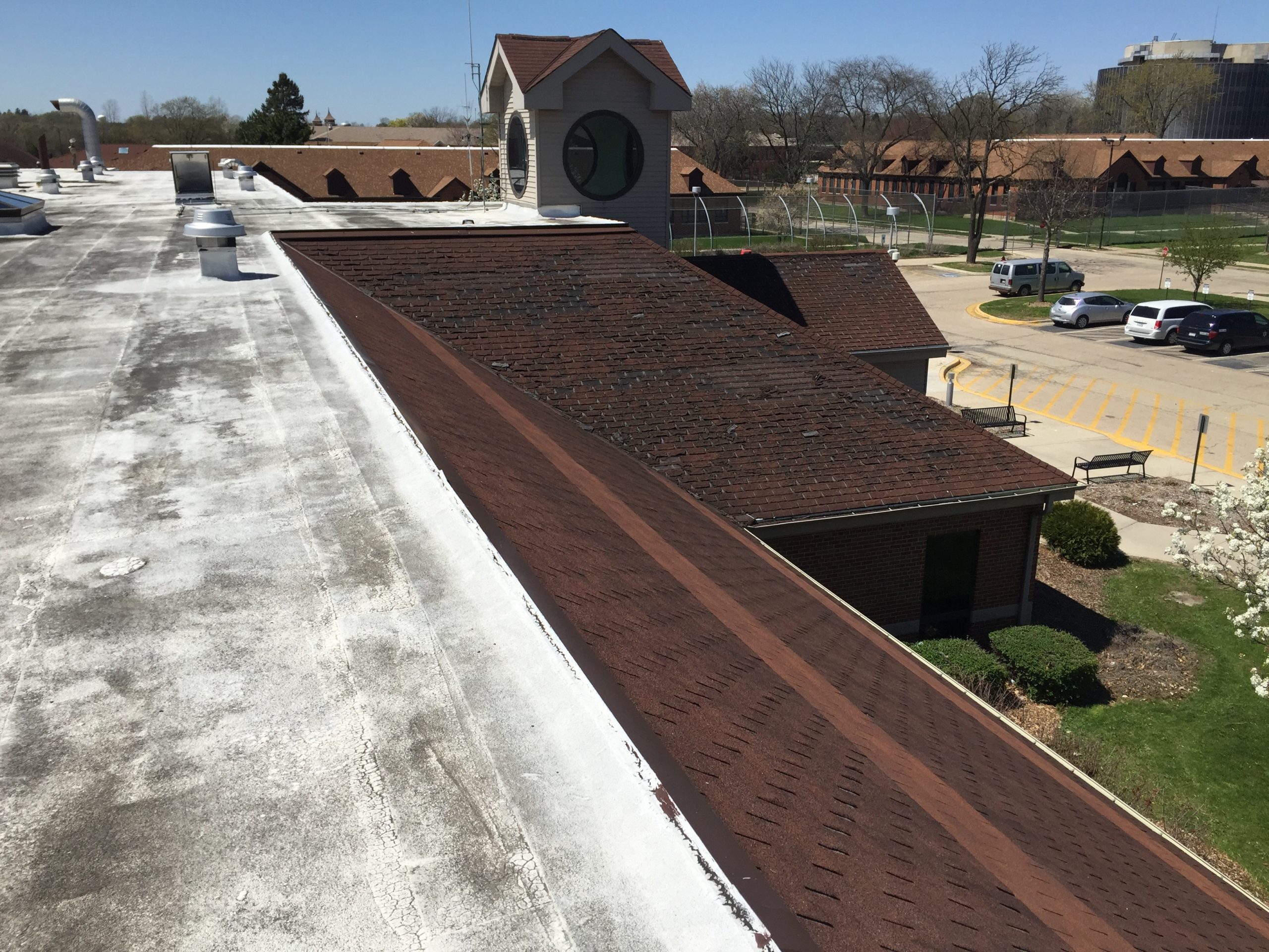 d’Escoto Inc. architects collaborated with Kluber Architects and Engineers on the replacement of the 192,000-square foot roof of the Forensic Treatment Complex and 29,000 square foot roof of the Rehabilitation Building at the Elgin Mental Health Center. Existing roof types included steep slope asphalt shingle, low slope modified bitumen and low slope EPDM.
