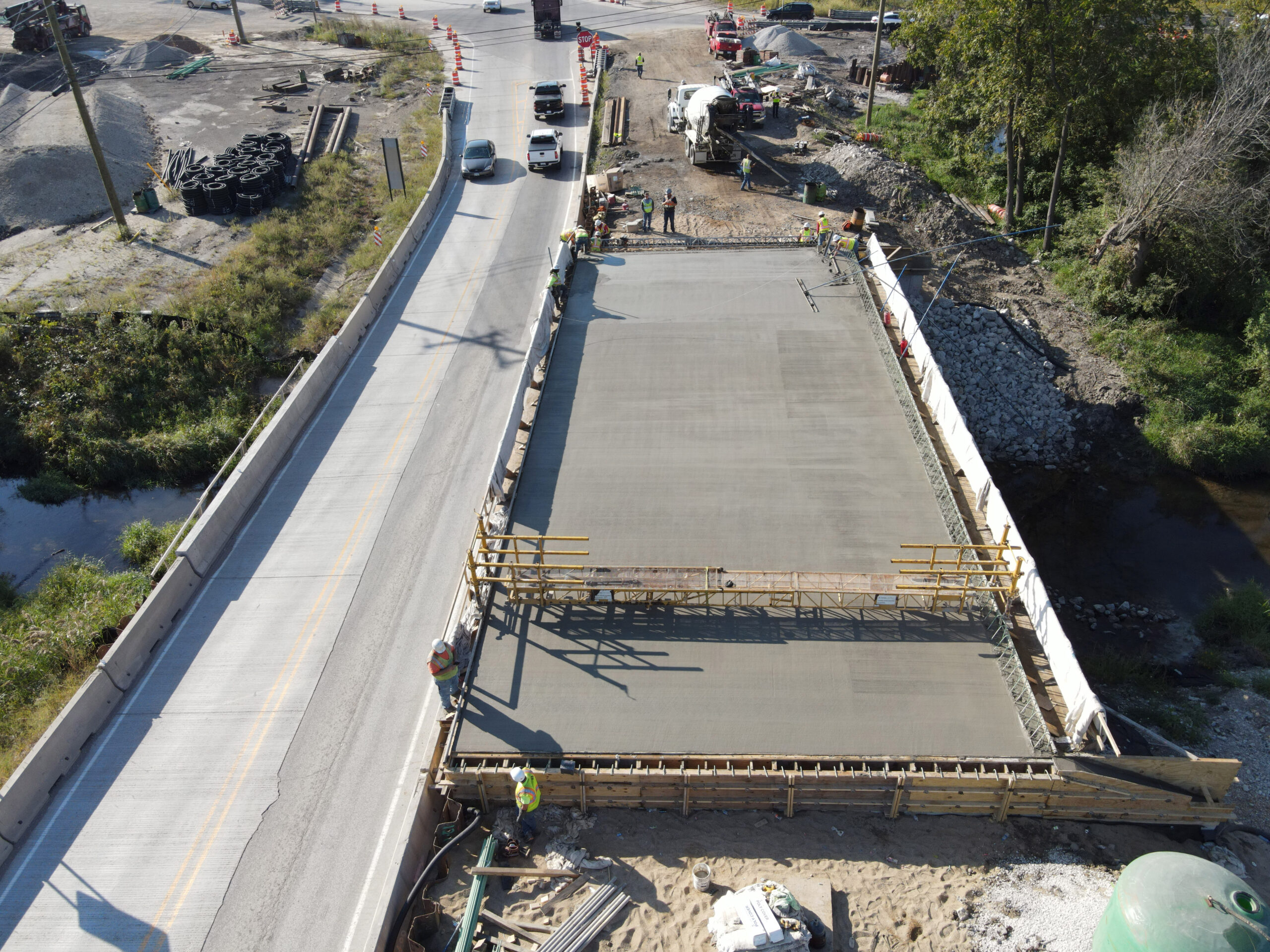 d’Escoto has a liaison engineer and several inspectors completing the reconstruction of IL 47 at Main Street which encompassed the removal and replacement of 2 roadway bridges and multiple cell box culverts, reconstructing and raising the intersection profile of IL 47 and Main Street, resurfacing and adding a left turn lane on all four legs of the intersection, and brand-new traffic signal installation.